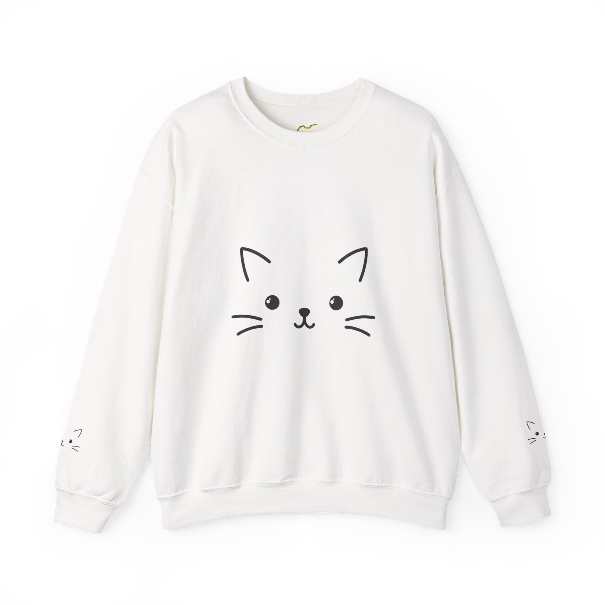 Cute Minimal Cat Face Sweatshirt — Cozy Crewneck for Cat Lovers