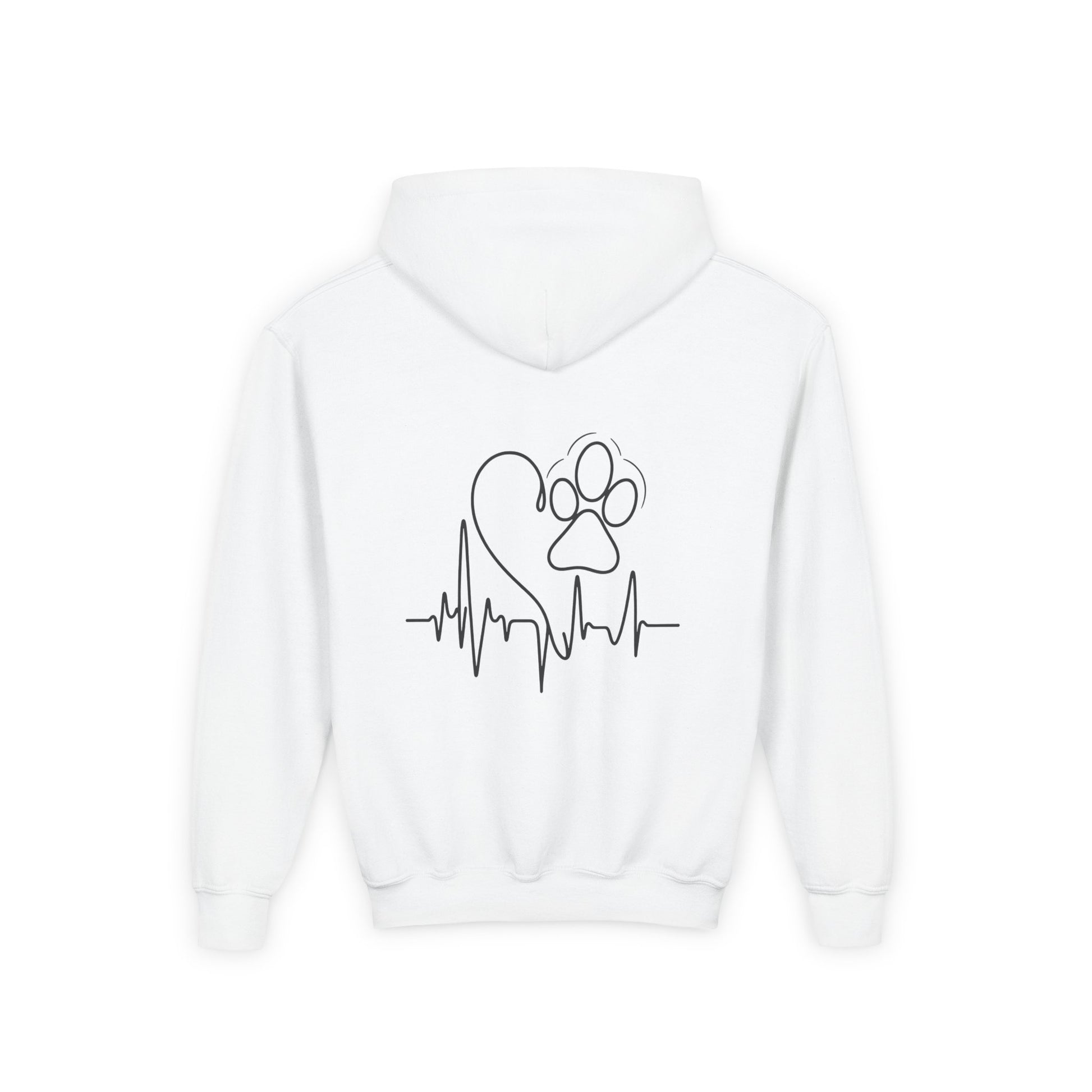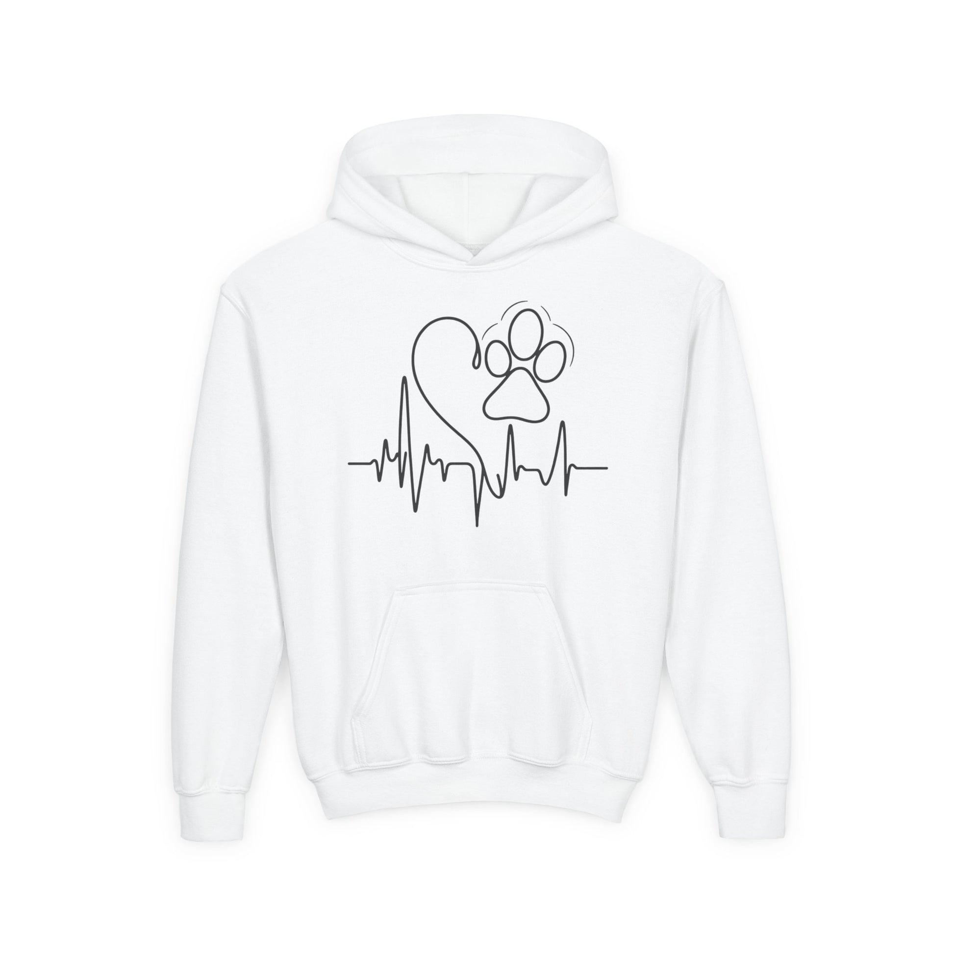 Youth Paw Heartbeat Hoodie — Kids Pet Lover Pullover